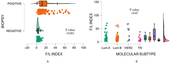 (A) Biopsy and F/L index; (B) Molecular subtype and F/L index.