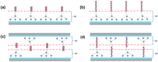 - Elnathan, R.; Kwiat, M.; Pevzner, A.; Engel, Y.; Burstein, L.; Khatchtourints, A.; Lichtenstein, A.; Kantaev, R.; Patolsky, F. Biorecognition layer engineering: Overcoming screening limitations of nanowire-based FET devices. Nano Lett. 2012, 12, 5245–5254. [Google Scholar] [CrossRef]