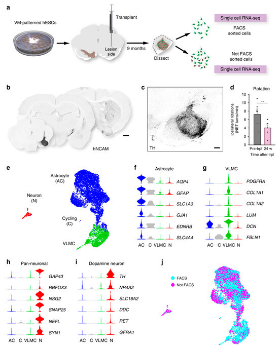 - Tiklová, K.; Nolbrant, S.; Fiorenzano, A.; Björklund, Å.; Sharma, Y.; Heuer, A.; Gillberg, L.; Hoban, D.B.; Cardoso, T.; Adler, A.F.; et al. Single cell transcriptomics identifies stem cell-derived graft composition in a model of Parkinson’s disease. Nat. Commun. 2020, 11, 2434. [Google Scholar] [CrossRef]