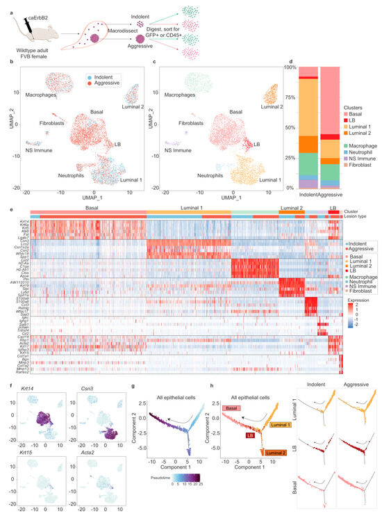 - Sinha, V.C.; Rinkenbaugh, A.L.; Xu, M.; Zhou, X.; Zhang, X.; Jeter-Jones, S.; Shao, J.; Qi, Y.; Zebala, J.A.; Maeda, D.Y.; et al. Single-cell evaluation reveals shifts in the tumor-immune niches that shape and maintain aggressive lesions in the breast. Nat. Commun. 2021, 12, 5024. [Google Scholar] [CrossRef]