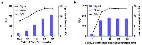 3.2.2. Optimization of the Amounts of Cas12a, gRNA, and ssDNA FQ-Reporter
