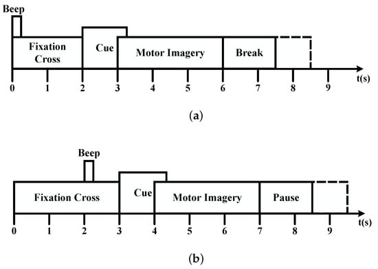 Timing paradigm of each trial. (a) BCI competition IV dataset IIa. (b) BCI competition IV dataset IIb.