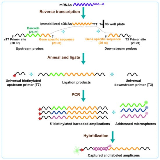 - Dunbar, S.A. Nucleic acid sample preparation techniques for bead-based suspension arrays. Methods 2023, 219, 22–29. [Google Scholar] [CrossRef] [PubMed]