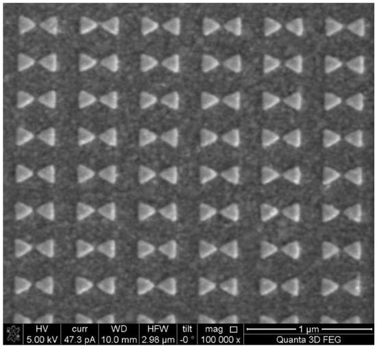 The BNAs were produced using electron beam lithography (EBL). The primary technical methods for producing dimers of metal nanoparticles include gold sputtering, polymethyl methacrylate (PMMA) spin coating, EBL exposure, development, electron beam evaporation of gold and cleaning.