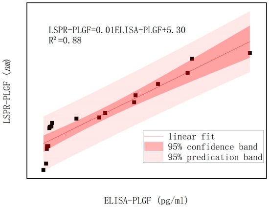 While the commercially available ELISA kit provides a viable semi-quantitative measurement, it has several limitations, including low detection efficiency, prolonged detection time and the requirement for potentially harmful labeling. Our proposed LSPR method, although currently limited by sample size and unable to achieve full quantitative analysis, offers distinct advantages: remarkable sensitivity, rapid detection without the need for toxic molecular labeling and reliance on optical signal changes. Looking ahead, increasing the sample size will enable the development of an LSPR standard curve for quantitative detection. Furthermore, enhancing nanostructure and biosensitive membrane technologies can further boost sensitivity. The integration of microfluidic technology promises simultaneous detection of multiple markers, enhancing accuracy and paving the way for high-throughput, efficient detection.