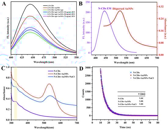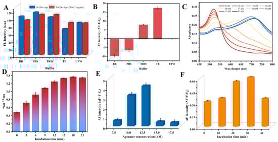 APA StyleSun, Q., Zhou, Y., Ma, M., Zhang, F., Li, S., Chen, Z., Fang, Y., Le, T., & Xing, F. (2024). Development of a “Signal-On” Fluorescent Aptasensor for Highly Selective and Sensitive Detection of ZEN in Cereal Products Using Nitrogen-Doped Carbon Dots Based on the Inner Filter Effect. Biosensors, 14(7), 347. https://doi.org/10.3390/bios14070347