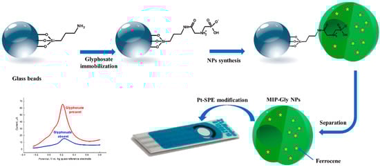 - Lach, P.; Garcia-Cruz, A.; Canfarotta, F.; Groves, A.; Kalecki, J.; Korol, D.; Borowicz, P.; Nikiforow, K.; Cieplak, M.; Kutner, W.; et al. Electroactive Molecularly Imprinted Polymer Nanoparticles for Selective Glyphosate Determination. Biosens. Bioelectron. 2023, 236, 115381. [Google Scholar] [CrossRef]