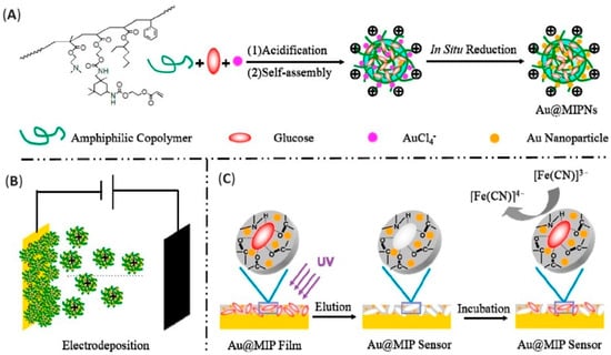 - Zhao, W.; Zhang, R.; Xu, S.; Cai, J.; Zhu, X.; Zhu, Y.; Wei, W.; Liu, X.; Luo, J. Molecularly Imprinted Polymeric Nanoparticles Decorated with Au NPs for Highly Sensitive and Selective Glucose Detection. Biosens. Bioelectron. 2018, 100, 497–503. [Google Scholar] [CrossRef] [PubMed]