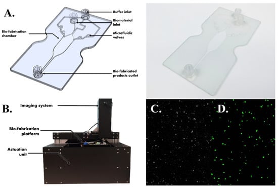 Before the process, a peristaltic pump was used to introduce warm PBS from a ceramic warmer into the BFC in the microfabrication chip, facilitating thorough cleaning and washing. The PBS ceramic warmer maintained the buffer at an optimal temperature for effective chamber cleansing. Prior to biomaterial loading, an air pump was used to evacuate any residual liquid from the chamber, preventing the dilution of the biomaterial. This washing and emptying cycle was repeated twice before loading the spheroids to ensure complete removal of any unwanted debris. Subsequently, pre-mixed spheroids suspended in a photo-crosslinkable gelatine biomaterial were introduced into the BFC using a syringe pump. The microfabrication chip was securely positioned on the biofabrication platform of the SFSS (Figure 1B).