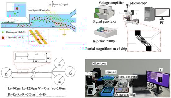 - Wang, Y.; Zhao, K.; Tong, N.; Wang, J. Separation of Microalgae Cells in a Microfluidic Chip Based on AC Dielectrophoresis. J. Chem. Technol. Biotechnol. 2023, 98, 140–150. [Google Scholar] [CrossRef]