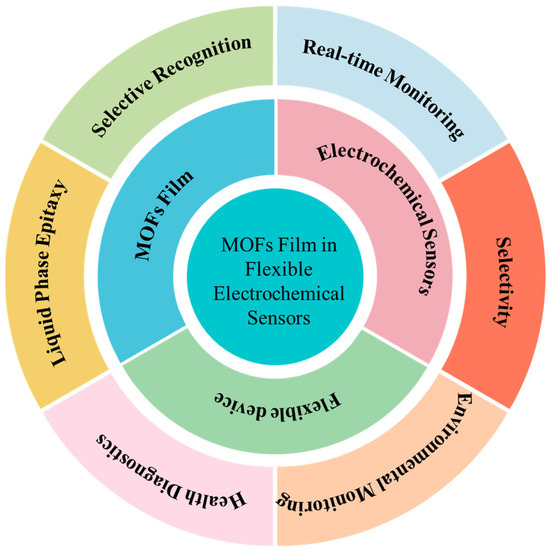 Electrochemical sensors, renowned for their exceptional accuracy and reliability, are essential tools in environmental and healthcare applications. MOFs, with their high porosity, low density, and large surface area, offer outstanding performance in areas such as gas adsorption and ion exchange. Integrating MOF thin films with flexible electrochemical sensors opens new possibilities for enhanced detection accuracy and sensitivity, presenting broad prospects for future development. With rapid advancements in nanotechnology and continuous improvements in measurement techniques, flexible electrochemical sensors integrated with MOF thin films show immense potential for applications in sectors such as biomedicine, smart homes, and intelligent transportation. To enhance the stability of MOF materials without compromising their performance, developing protective coatings or surface treatments is crucial. Additionally, combining MOF thin films with other flexible substrate materials, such as polymers or carbon-based materials, not only improves mechanical strength and flexibility but also offers greater customization possibilities for sensors.