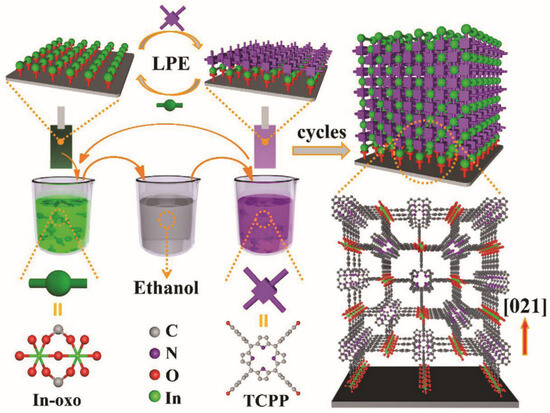 - So, M.C.; Jin, S.; Son, H.-J.; Wiederrecht, G.P.; Farha, O.K.; Hupp, J.T. Layer-by-Layer Fabrication of Oriented Porous Thin Films Based on Porphyrin-Containing Metal–Organic Frameworks. J. Am. Chem. Soc. 2013, 135, 15698–15701. [Google Scholar] [CrossRef]