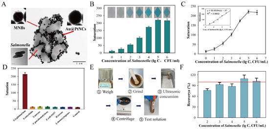 - Hu, J.; Tang, F.; Wang, L.; Tang, M.; Jiang, Y.-Z.; Liu, C. Nanozyme sensor based-on platinum-decorated polymer nanosphere for rapid and sensitive detection of Salmonella typhimurium with the naked eye. Sens. Actuator B-Chem. 2021, 346, 130560. [Google Scholar] [CrossRef]