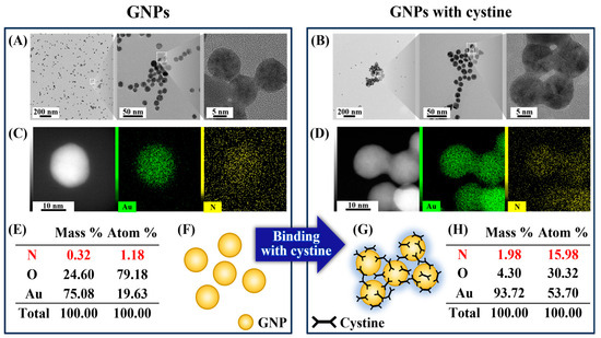 3.1. Morphological Analysis of GNPs and GNPs with Cystine