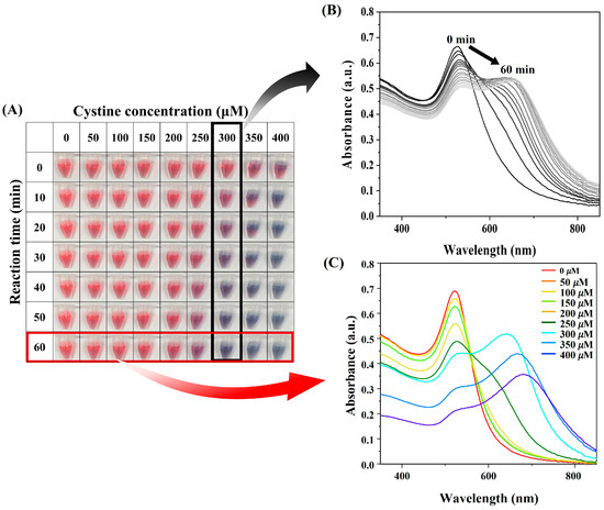 3.2. Cystine-Induced Aggregation of GNPs: Visual and Spectral Transition
