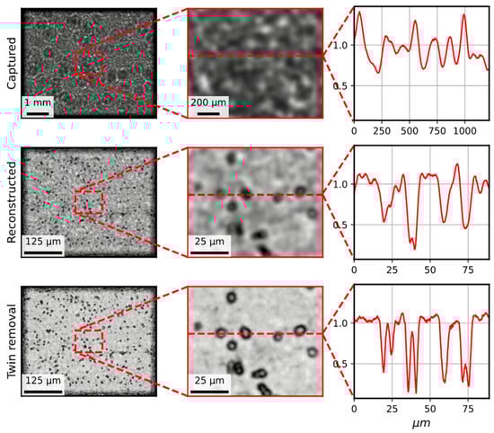 - We repeated the steps N times from (a). The results for N = 5 can be seen in the “Twin-image removal” image in Figure 3.
