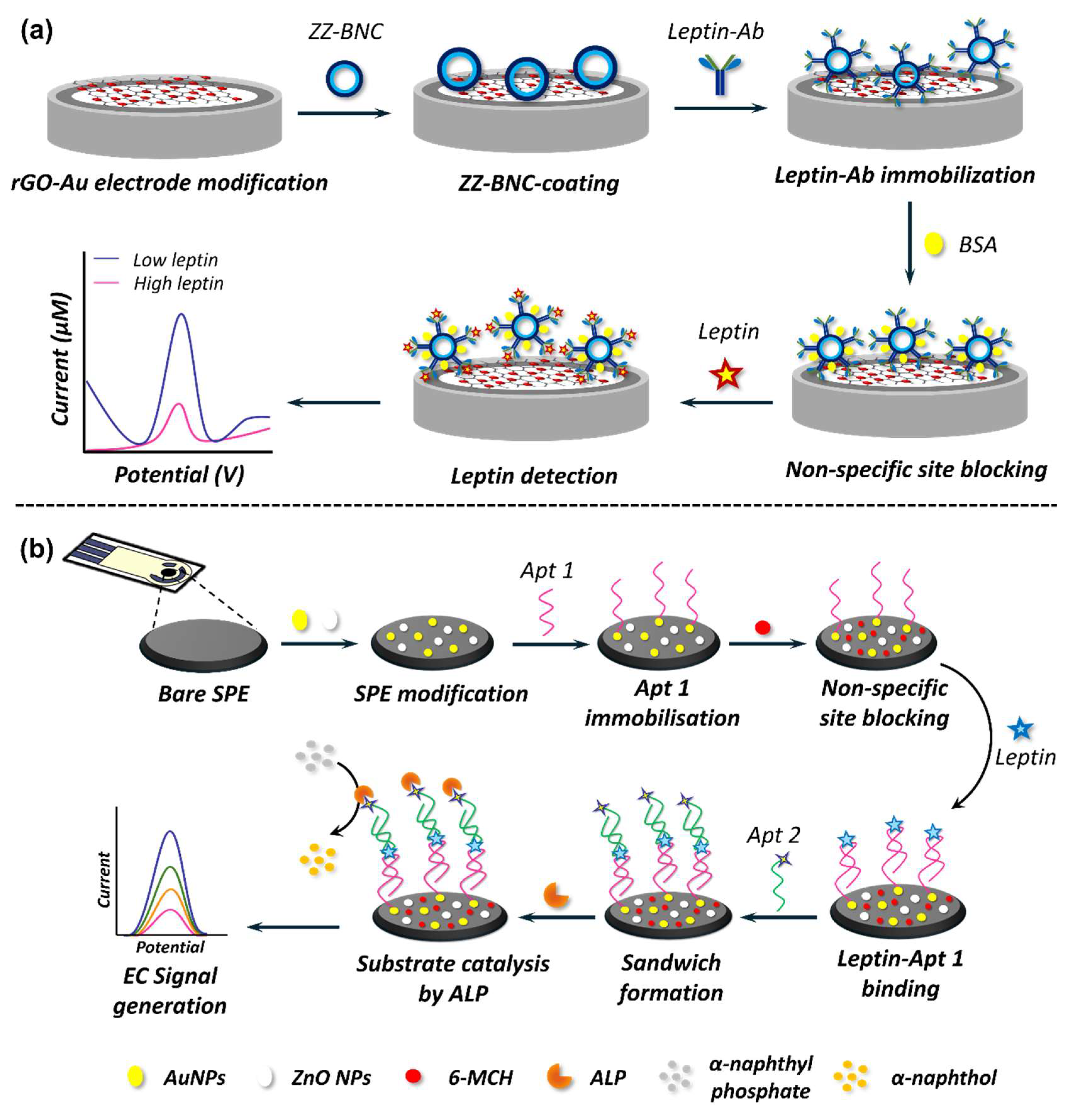 - Cai, J.; Gou, X.; Sun, B.; Li, W.; Li, D.; Liu, J.; Hu, F.; Li, Y. Porous graphene-black phosphorus nanocomposite modified electrode for detection of leptin. Biosens. Bioelectron. 2019, 137, 88–95. [Google Scholar] [CrossRef]