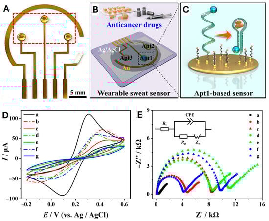 - Zhang, X.; Zhang, J.; Cai, Y.; Xu, S.; Wu, H.; Chen, X.; Huang, Y.; Li, F. Integrated electrochemical aptasensor array toward monitoring anticancer drugs in sweat. Anal. Chem. 2024, 96, 4997–5005. [Google Scholar] [CrossRef]