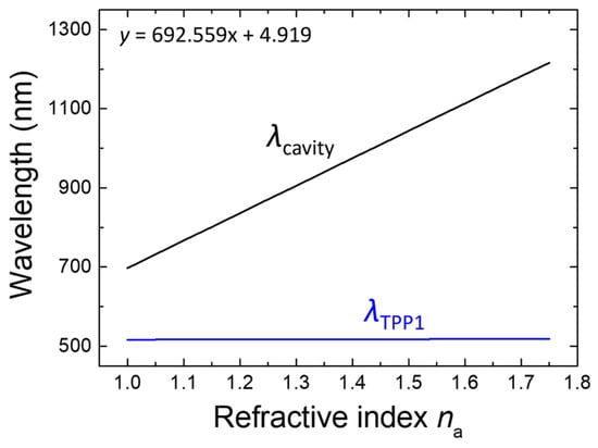 The solution of Equation (2) enables the determination of the frequency of the localized state in relation to the refractive index of the analyte, na. This equation demonstrates how the resonance frequency is contingent on na and dA, in addition to the phase contributions from the metallic interfaces. These relationships are crucial for understanding and optimizing the hybridization of TPP and cavity modes.