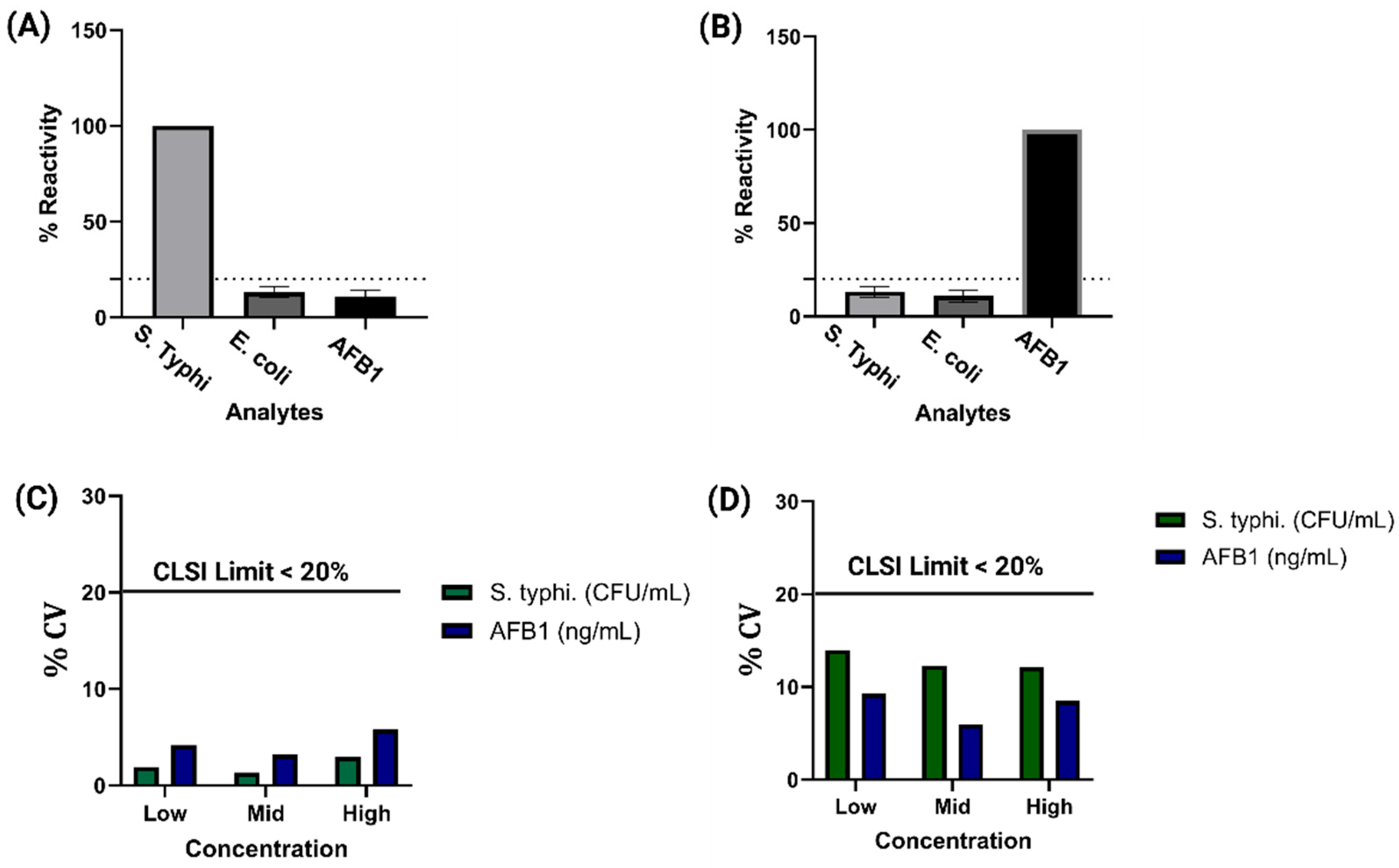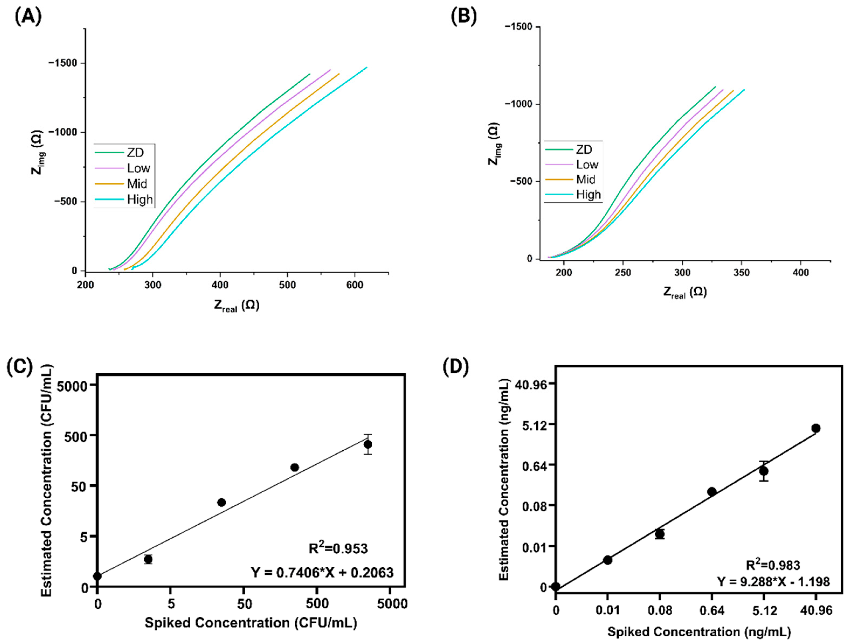 APA StyleMishra, K. K., Thakkar, K. M., Karmakar, S., Dhamu, V. N., Muthukumar, S., & Prasad, S. (2025). Duplex EIS Sensor for Salmonella Typhi and Aflatoxin B1 Detection in Soil Runoff. Biosensors, 15(10), 654. https://doi.org/10.3390/bios15100654