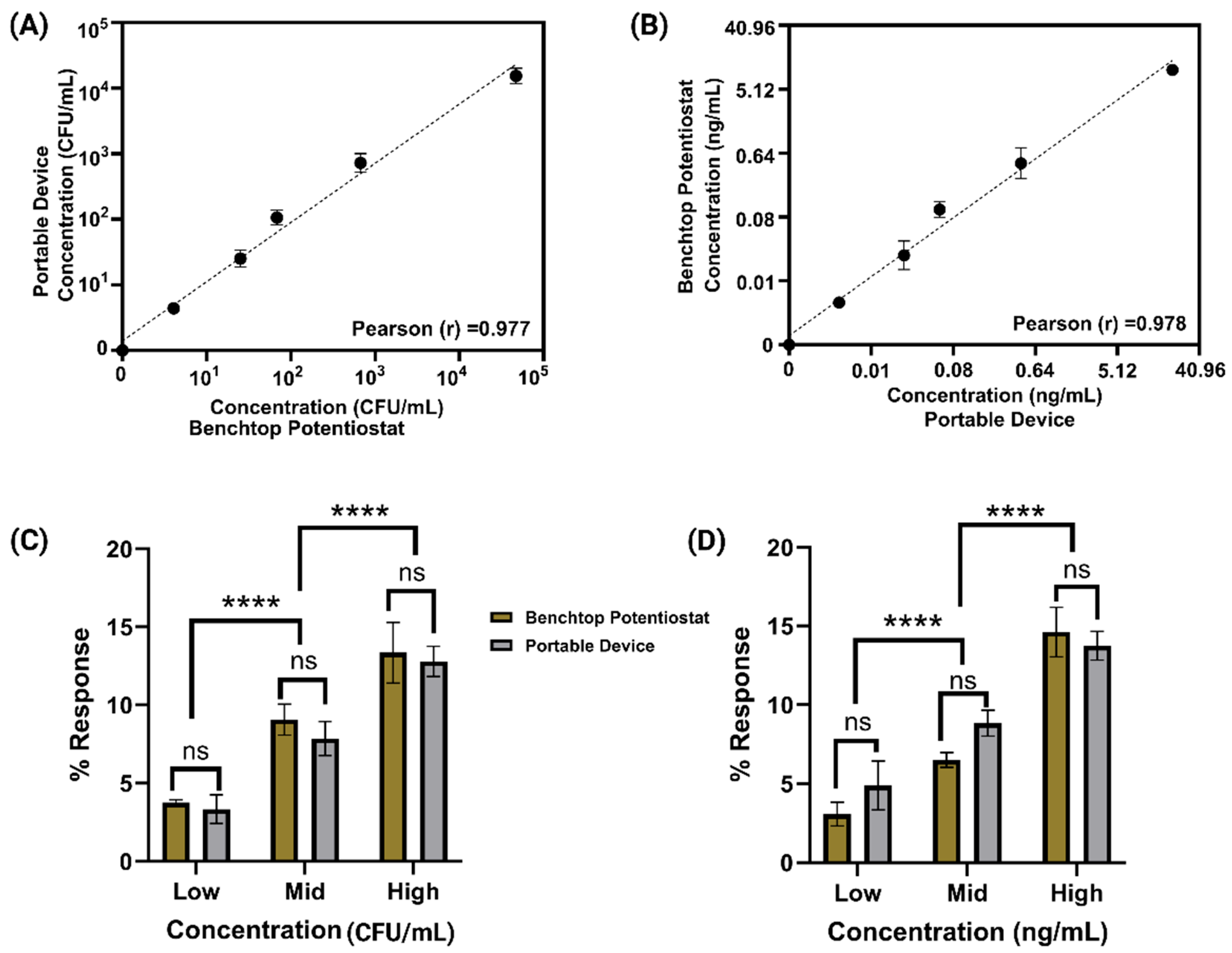 3.2. Correlation Study Between the Benchtop and Portable Device