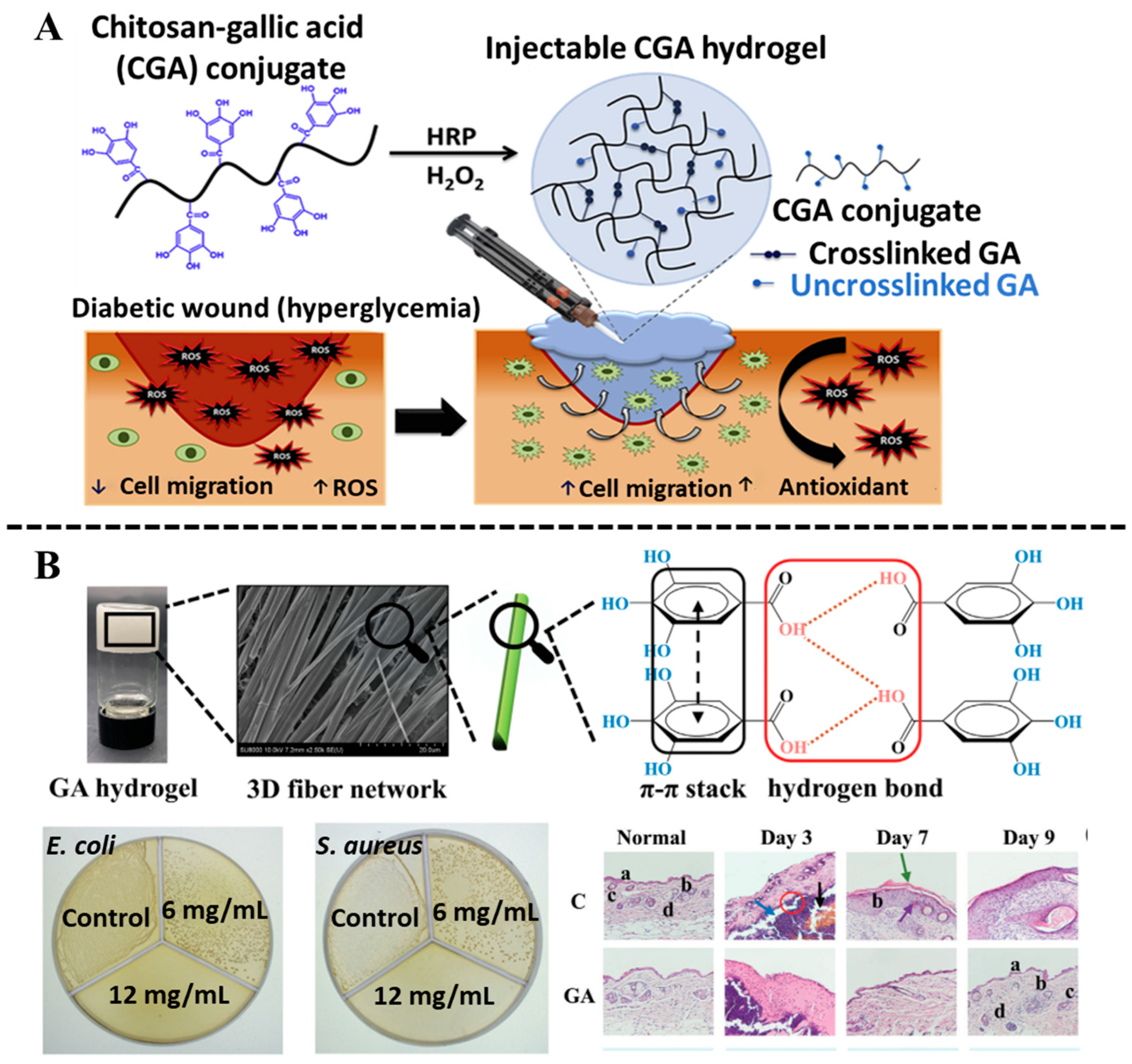 2.3. Gallic Acid (GA)-Based Hydrogels