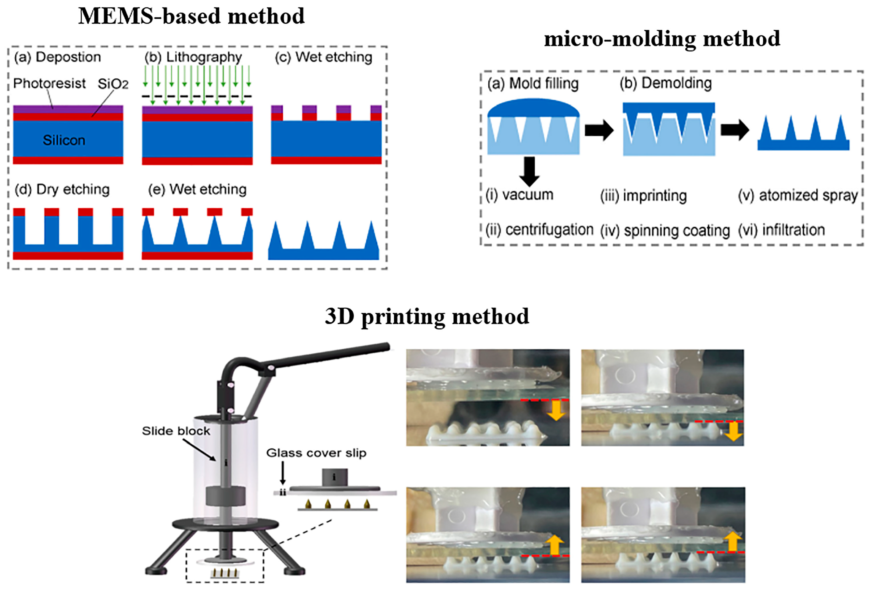 - Zhang, D.; Hu, W.; Cui, B. Fabrication of hollow silicon microneedles using grayscale lithography and deep reactive ion etching. J. Vac. Sci. Technol. B 2024, 42, 053001. [Google Scholar] [CrossRef]