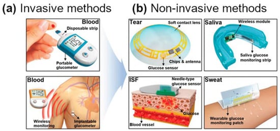 - Johnston, L.; Wang, G.; Hu, K.; Qian, C.; Liu, G. Advances in biosensors for continuous glucose monitoring towards wearables. Front. Bioeng. Biotechnol. 2021, 9, 733810. [Google Scholar] [CrossRef] [PubMed]