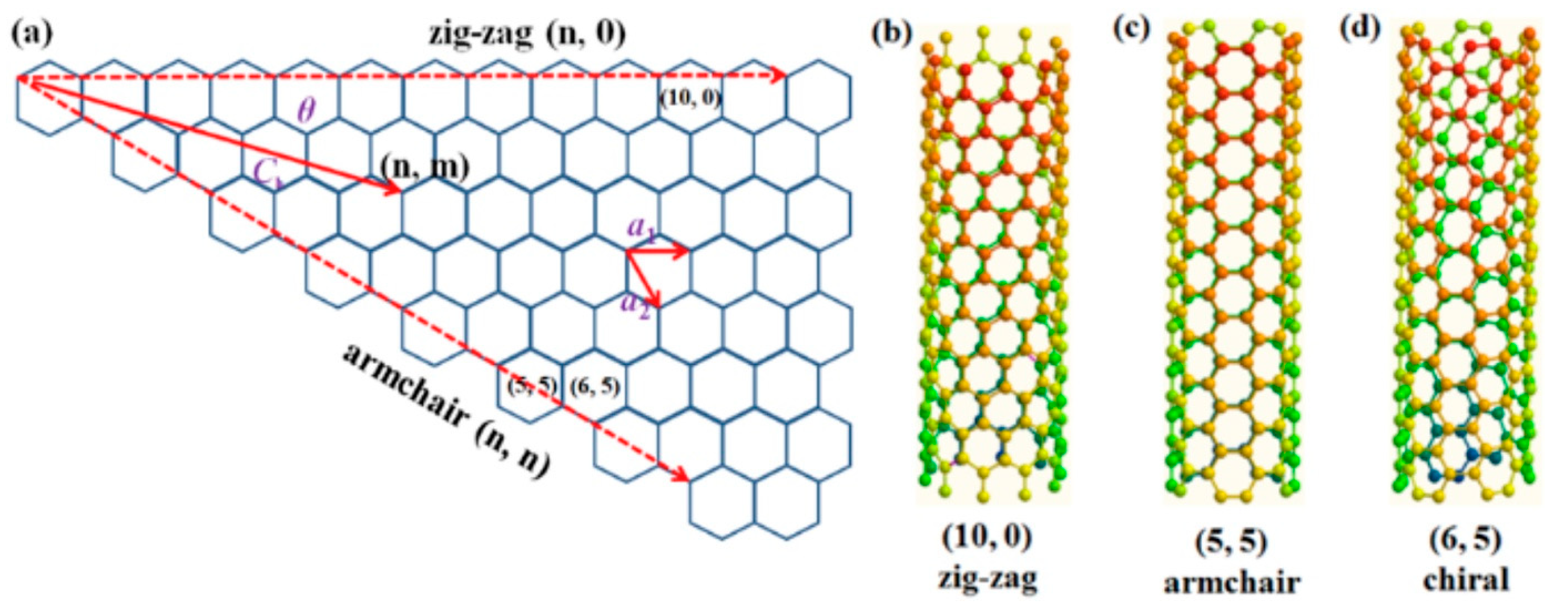 - Odom, T.W.; Huang, J.-L.; Kim, P.; Lieber, C.M. Structure and Electronic Properties of Carbon Nanotubes. J. Phys. Chem. B 2000, 104, 2794–2809. [Google Scholar] [CrossRef]