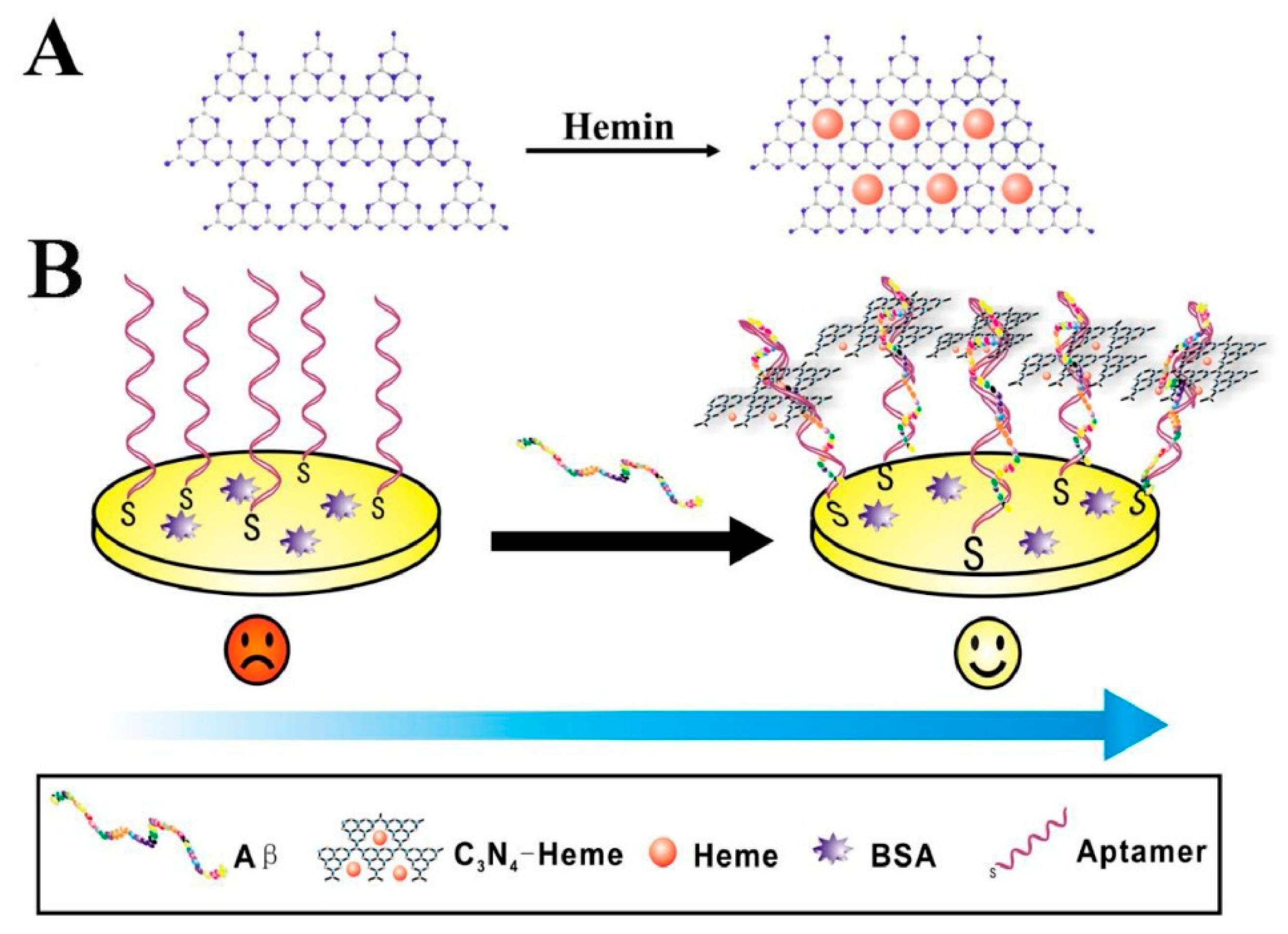 - Zhang, M.; Chen, Z.; Qin, H.; Yang, X.; Cao, W.; Liu, S. g-C3N4-heme bound to amyloid β peptides: In-situ generation of the secondary co-reactant for dual-enhanced electrochemiluminescence assay of amyloid β detection. Electrochim. Acta 2020, 361, 137096. [Google Scholar] [CrossRef]
