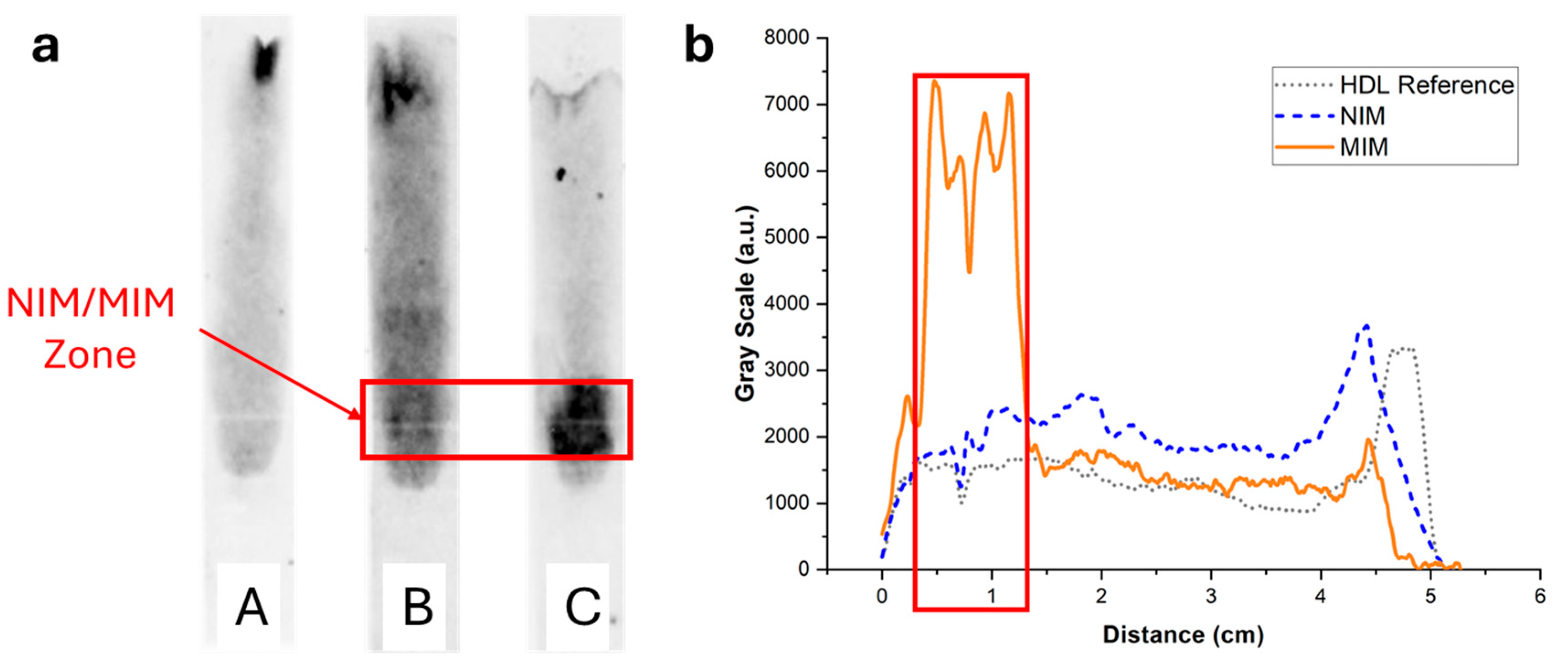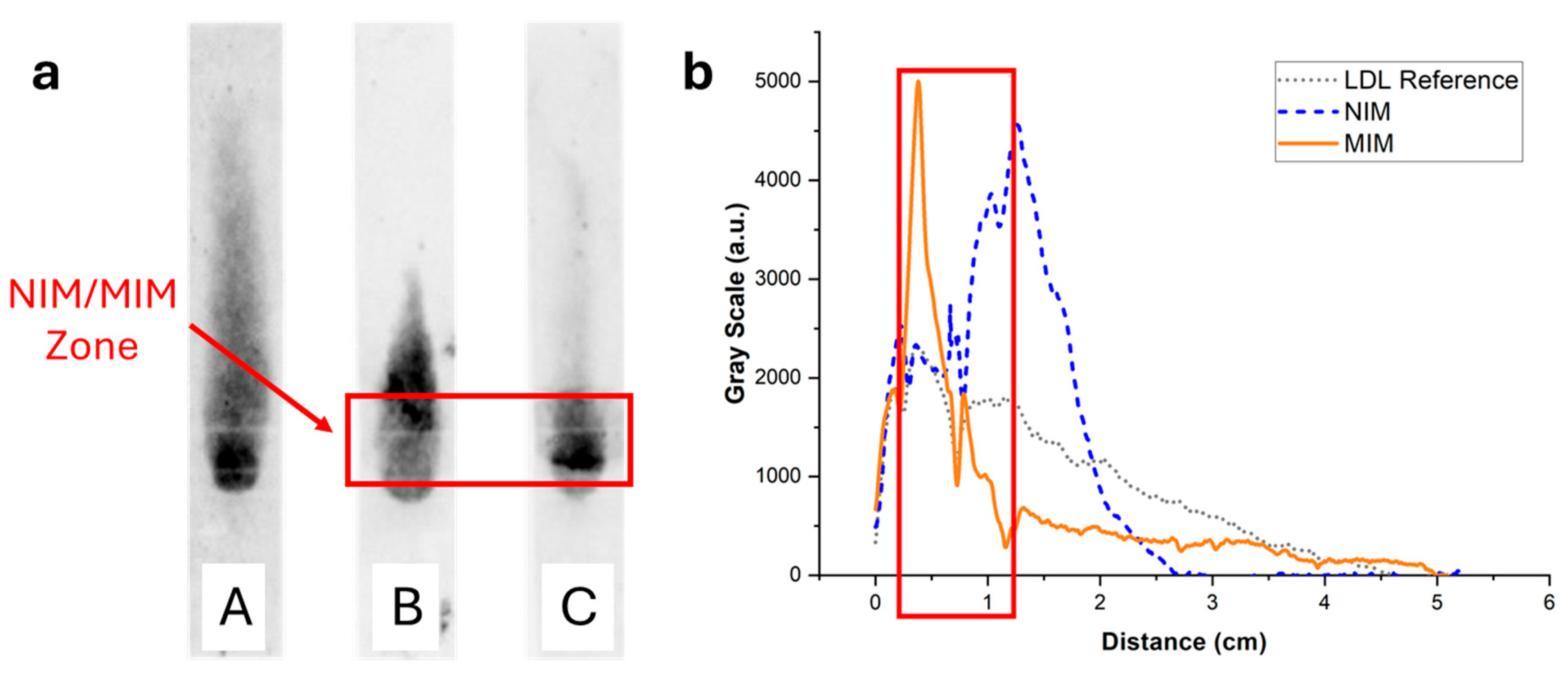 - A sample deposition zone—Where the lipoprotein-containing sample was applied at the 17 mm position;