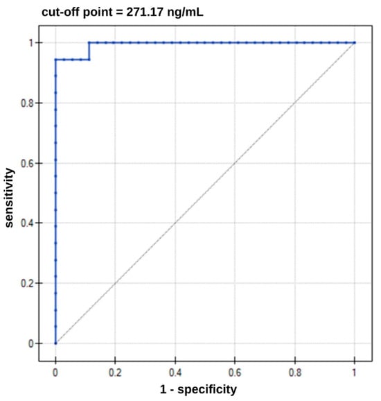 To examine the diagnostic usefulness of the YKL-40 biomarker, ROC curves were performed, which are presented in Figure 9. Essential parameters are listed in Table 5. High statistical significance was obtained for the results.