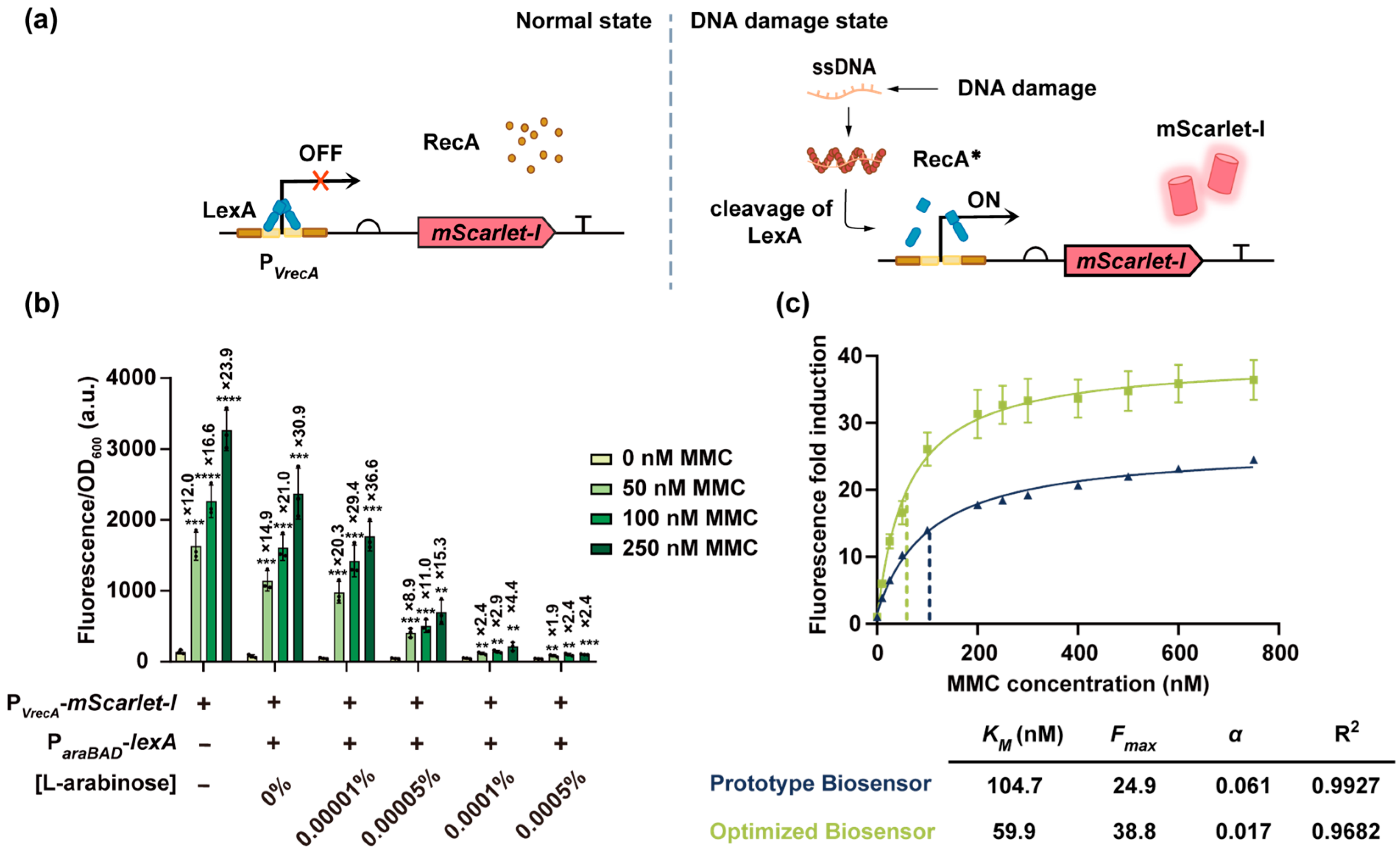 3.1. Construction and Optimization of a RecA-LexA-Based DNA Damage Biosensor