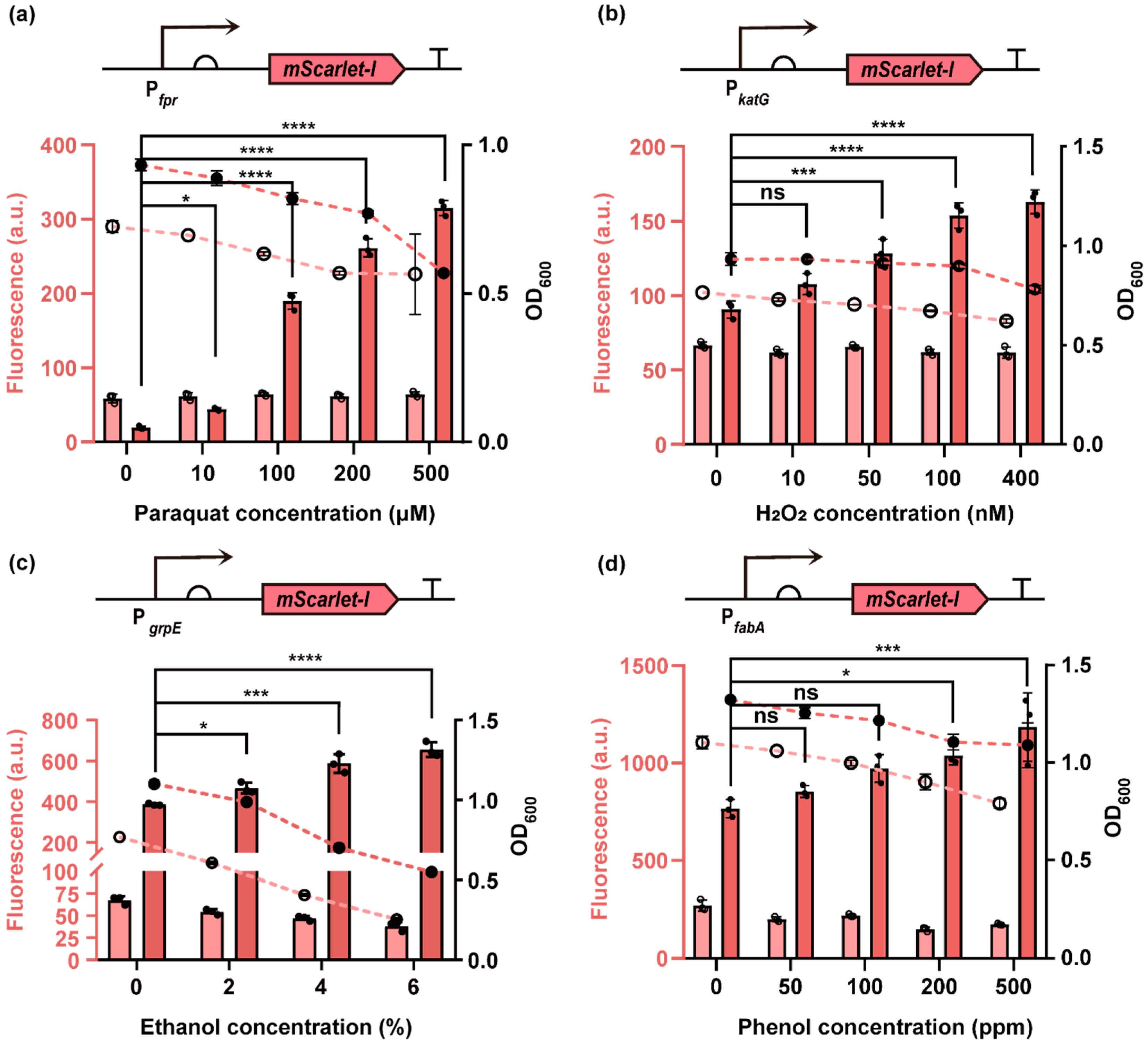 3.2. Construction of Biosensors Targeting Oxidative, Proteotoxic, and Membrane Stress
