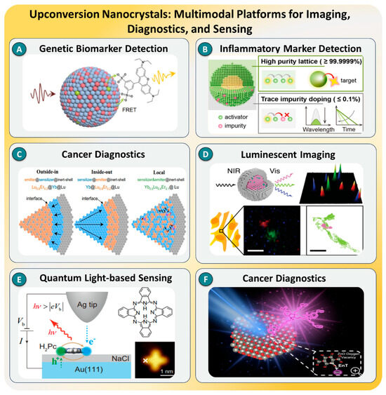 - Luo, Y.; Luo, Y.; Liu, Y.; Huang, Y.; Yu, P.; Ma, H.; Li, X.; Zhang, Z.; Zhang, C.; Chen, C.; et al. A hybrid strategy to enhance small-sized upconversion nanocrystals. Biosens. Bioelectron. 2025, 271, 117003. [Google Scholar] [CrossRef] [PubMed]