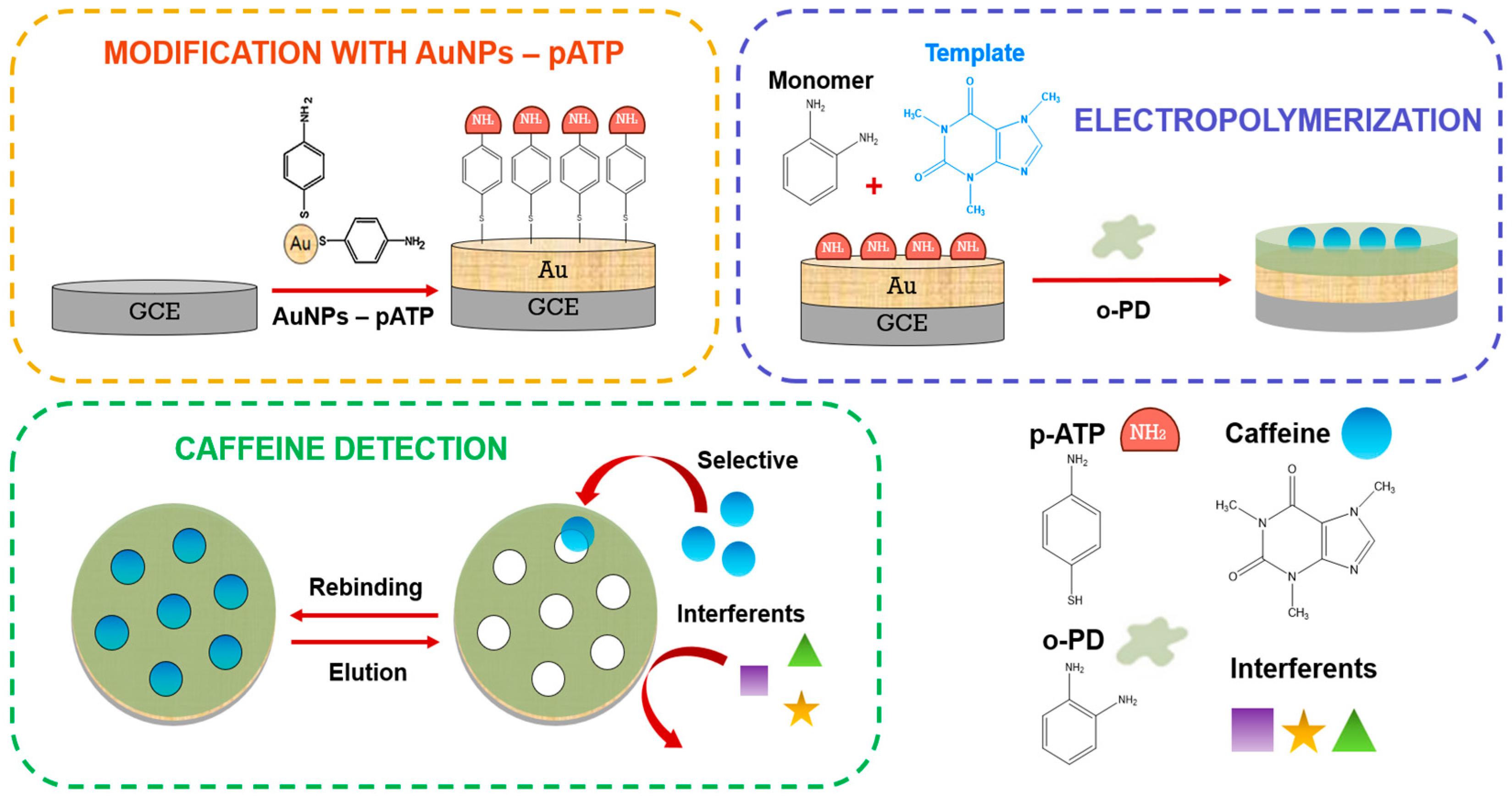 Espinoza-Torres S, Choquehuanca-Azaña A, Rufino M, da Silva E, Angnes L. Development of an Electrochemical Sensor Based on Molecularly Imprinted Polymer Using Functionalized Gold Nanoparticles for Caffeine Quantification. Biosensors. 2025; 15(10):704. https://doi.org/10.3390/bios15100704