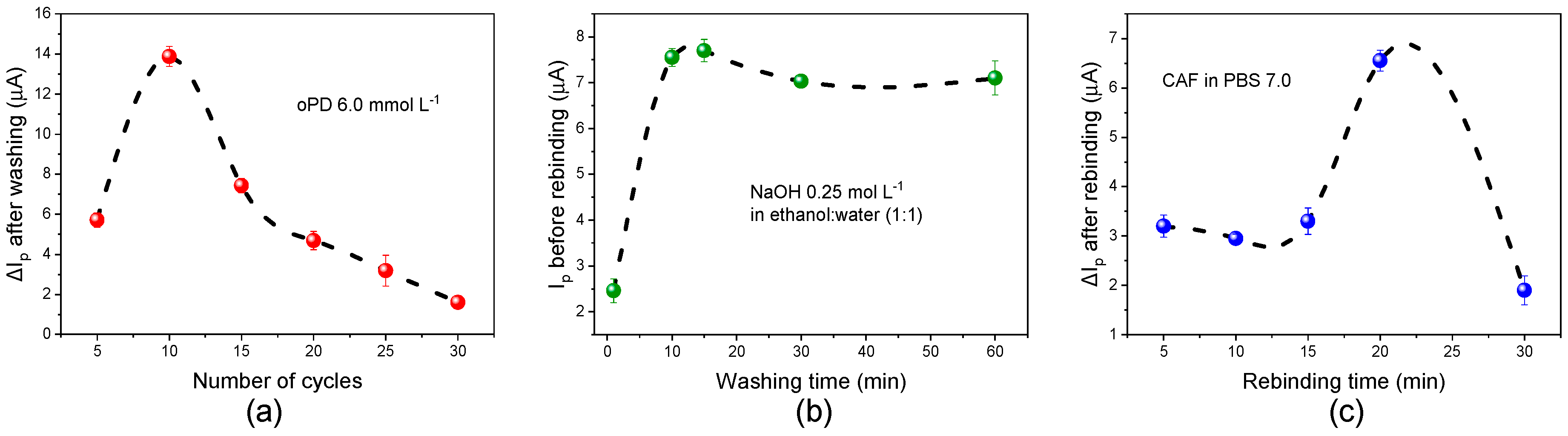 2.3. Caffeine–MIP Electrochemical Sensor Fabrication