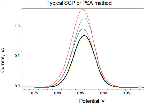 The corresponding voltammogram is presented in Figure 5. The regression equation for the soil sample was calculated to be y = 0.036x + 0.721 (R2 = 0.9994).