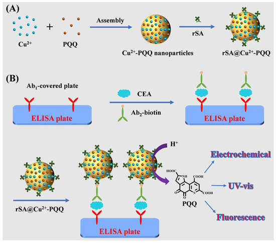 - Xia, N.; Deng, D.; Mu, X.; Liu, A.; Xie, J.; Zhou, D.; Yang, P.; Xing, Y.; Liu, L. Colorimetric immunoassays based on pyrroloquinoline quinone-catalyzed generation of Fe(II)-ferrozine with tris(2-carboxyethyl)phosphine as the reducing reagent. Sens. Actuators B Chem. 2020, 306, 127571. [Google Scholar] [CrossRef]