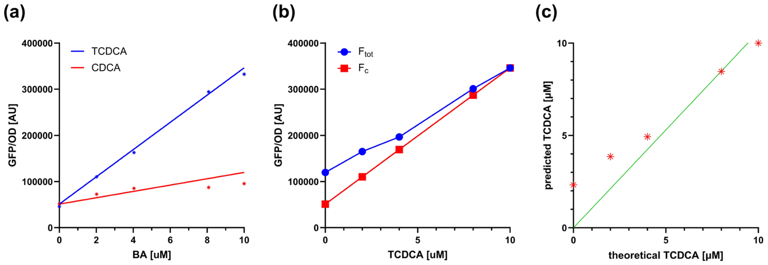 - Beabout, K.; Ehrenworth Breedon, A.M.; Blum, S.M.; Miklos, A.E.; Lux, M.W.; Chávez, J.L.; Goodson, M.S. Detection of bile acids in complex matrices using a transcription factor-based biosensor. ACS Biomater. Sci. Eng. 2023, 9, 5151–5162. [Google Scholar] [CrossRef] [PubMed]