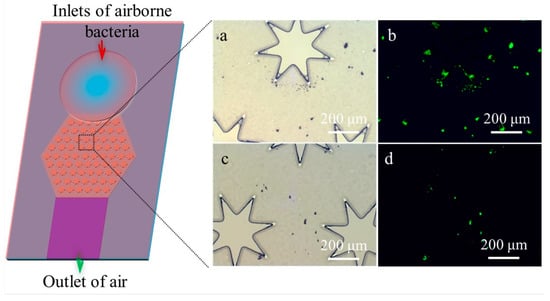 - Jing, W.; Zhao, W.; Liu, S.; Li, L.; Tsai, C.; Fan, X.; Wu, W.; Li, J.; Yang, X.; Sui, G. Microfluidic Device for Efficient Airborne Bacteria Capture and Enrichment. Anal. Chem. 2013, 85, 5255–5262. [Google Scholar] [CrossRef]