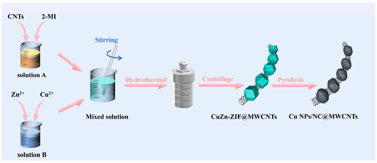 Schematic illustration of the fabrication of the Cu NPs/NC@MWCNTs composite. Reprinted with permission [59].