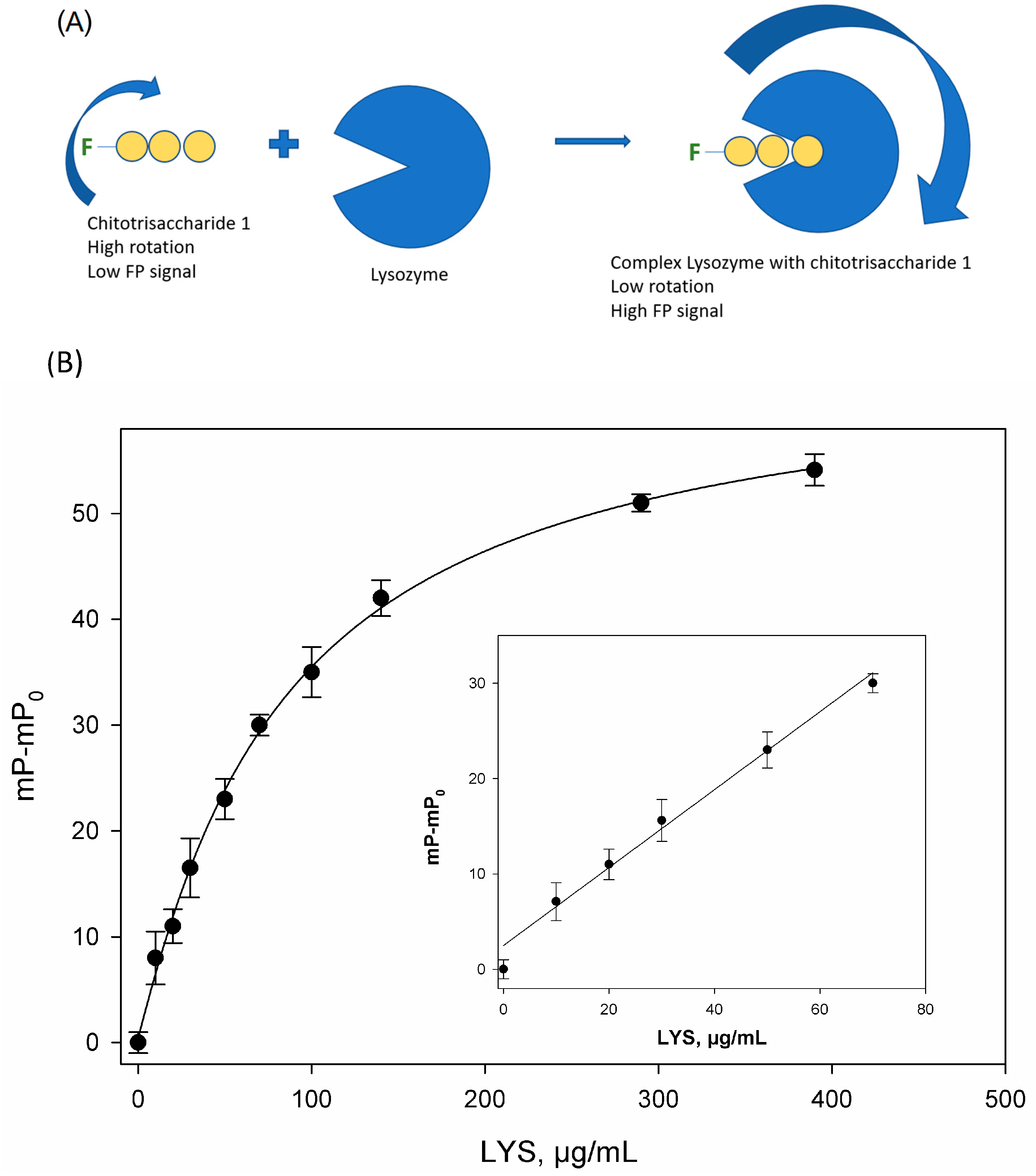 - Mukhametova, L.I.; Zherdev, D.O.; Eremin, S.A.; Levashov, P.A.; Siebert, H.-C.; Tsvetkov, Y.E.; Yudina, O.N.; Krylov, V.B.; Nifantiev, N.E. Application of the Chitooligosaccharides and Fluorescence Polarization Technique for the Assay of Active Lysozyme in Hen Egg White. Biomolecules 2024, 14, 1589. [Google Scholar] [CrossRef] [PubMed]
