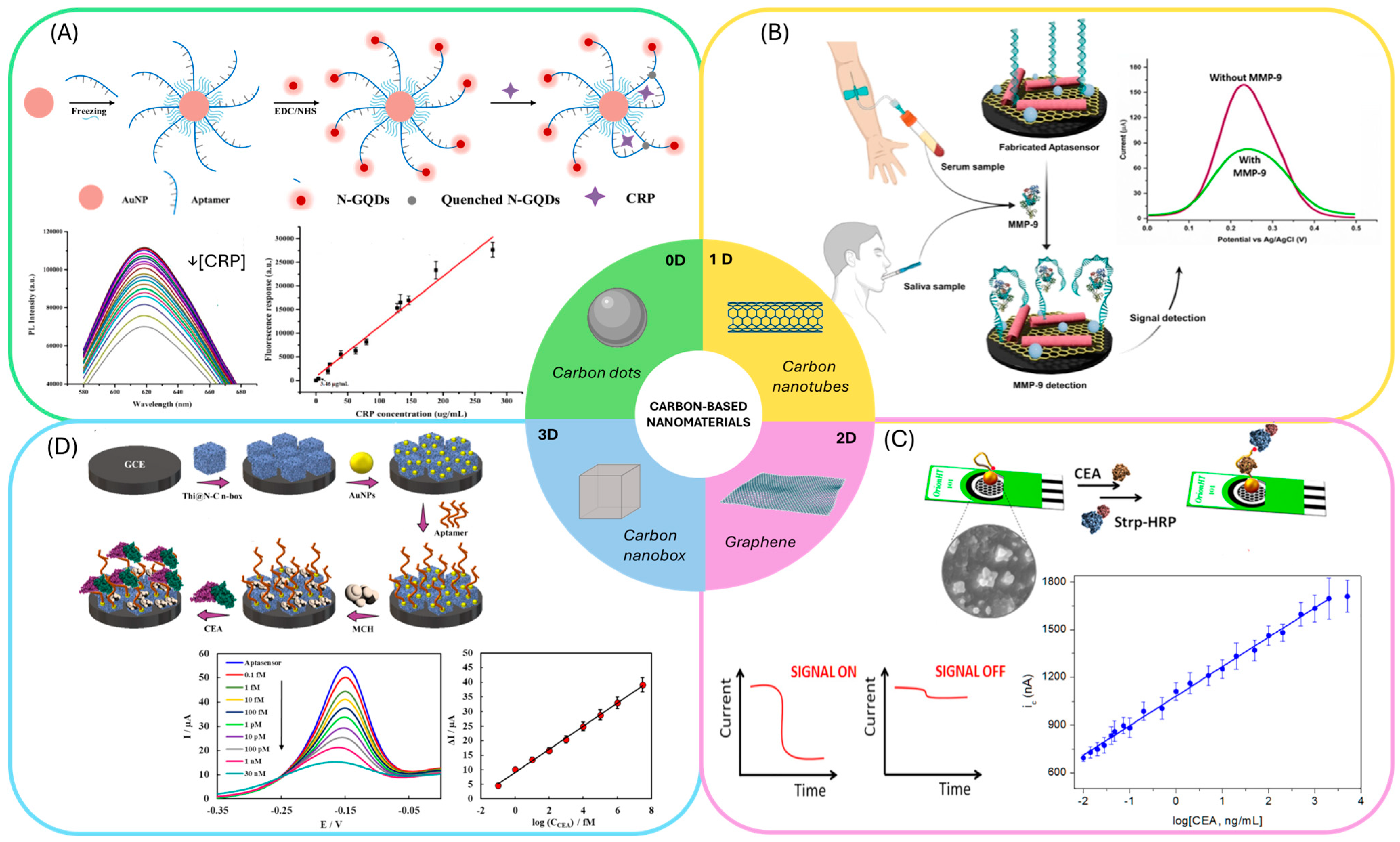 - Ma, R.; Gopinath, S.C.B.; Lakshmipriya, T.; Chen, Y. Carbon Material Hybrid Construction on an Aptasensor for Monitoring Surgical Tumors. J. Anal. Methods Chem. 2022, 2022, 9740784. [Google Scholar] [CrossRef] [PubMed]