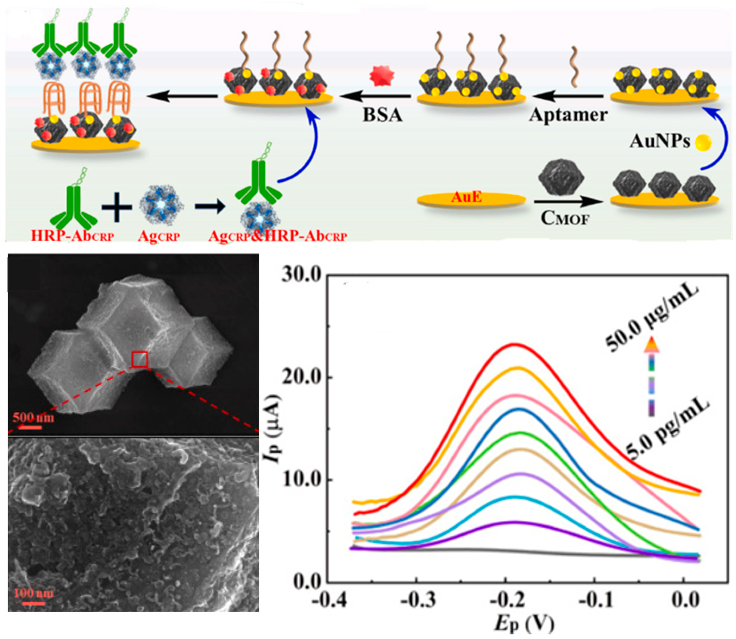 - Huang, S.; Liu, Z.; Yan, Y.; Chen, J.; Yang, R.; Huang, Q.; Jin, M.; Shui, L. Triple signal-enhancing electrochemical aptasensor based on rhomboid dodecahedra carbonized-ZIF67 for ultrasensitive CRP detection. Biosens. Bioelectron. 2022, 207, 114129. [Google Scholar] [CrossRef]