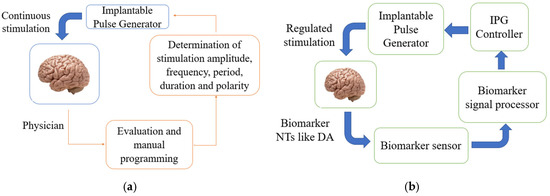 - Parastarfeizabadi, M.; Kouzani, A.Z. Advances in closed-loop deep brain stimulation devices. J. Neuro Eng. Rehabil. 2017, 14, 79. [Google Scholar] [CrossRef]