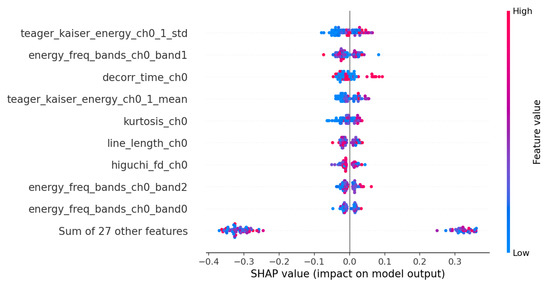 Moreover, higher-order statistical moments, such as and , and signal complexity measures, such as , occasionally emerge as influential factors. This suggests that signal distribution characteristics and irregularity contribute to classification in certain cases, even if they do not appear consistently across all samples.