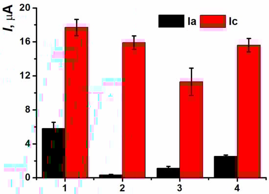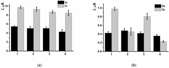 To establish the DNAss influence on the sensor response, there were some experiments with PSS polyanion were carried out. Although the peak current values were different, the trend of their change was the same (Figure 11), suggesting the DNAss influence was defined not only by the negative charge density of the modifying layer but the biopolymer nature itself.