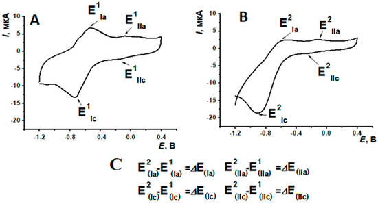 CNM inclusion into the polymeric film led to insignificant decreasing of currents of (Ia/Ic) peaks pair, as well as for the nanocomposites based on CB250G and MWCNTf (IIc) redox peaks currents decreasing was also observed (Figure 8).