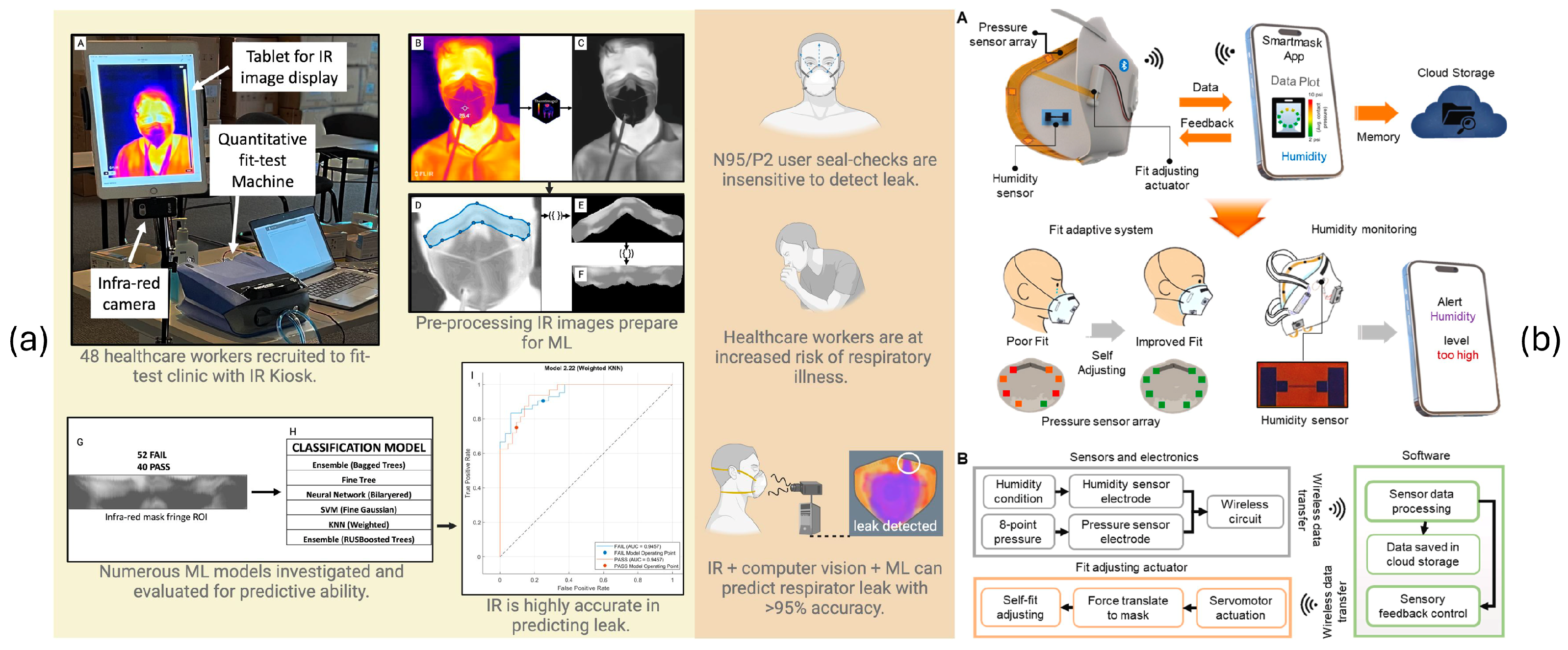 - Kwon, K.; Lee, Y.J.; Jung, Y.; Soltis, I.; Na, Y.; Romero, L.; Kim, M.C.; Rodeheaver, N.; Kim, H.; Lee, C.; et al. Smart filtering facepiece respirator with self-adaptive fit and wireless humidity monitoring. Biomaterials 2025, 314, 122866. [Google Scholar] [CrossRef]